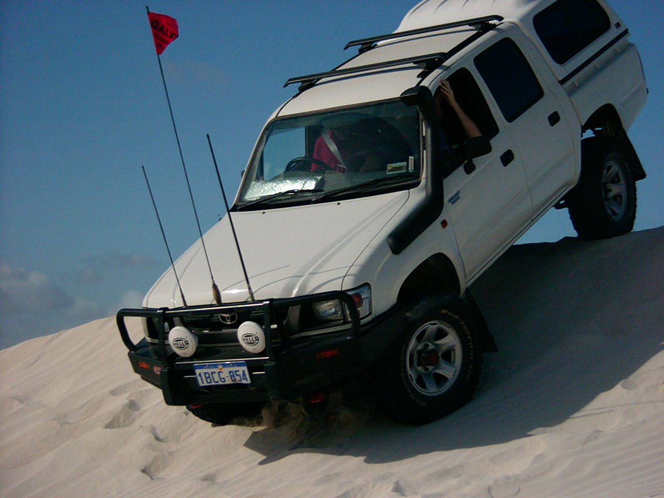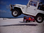 As it turns out, the lip on the top of the dune in question here was quite sharp and most people got a little bit of air because of the speed required to crest the dune. I decided (after some prodding) to have another go at a different angle. The result pretty much speaks for itself. Thanks to Skip for taking the photo.