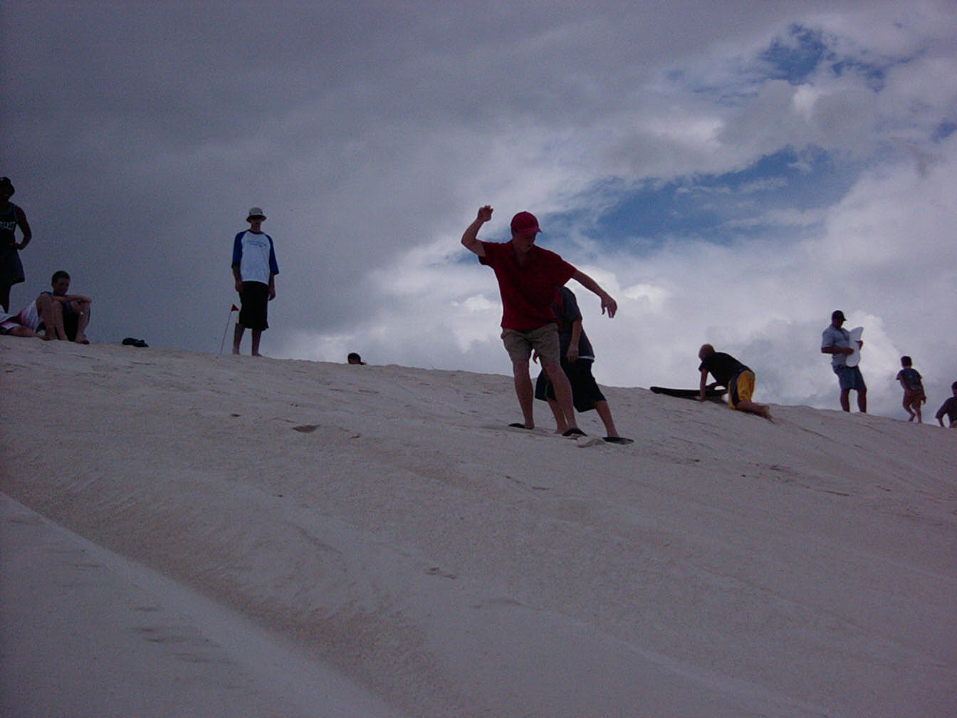 Our next stop was the lodge. We picked up the CanTeen group and headed off to the dunes for driving and general messing around. Thunderstorms were headed in as we went off to the dunes so it cooled down quite a bit. Some rain came in and those in my car got wet (as you'd expect) but no harm done... It was still very windy on the dunes - lots of sand flying around.