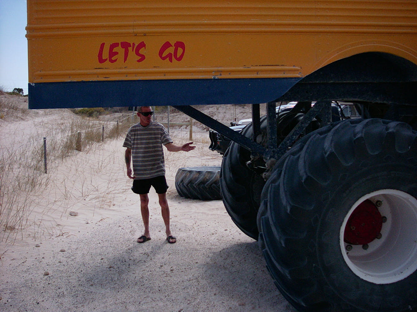 On the way back to the townsite we toured through the dunes and stopped off to see the big bus.