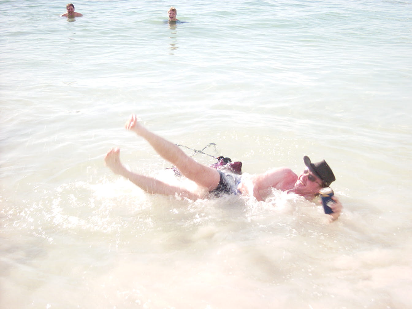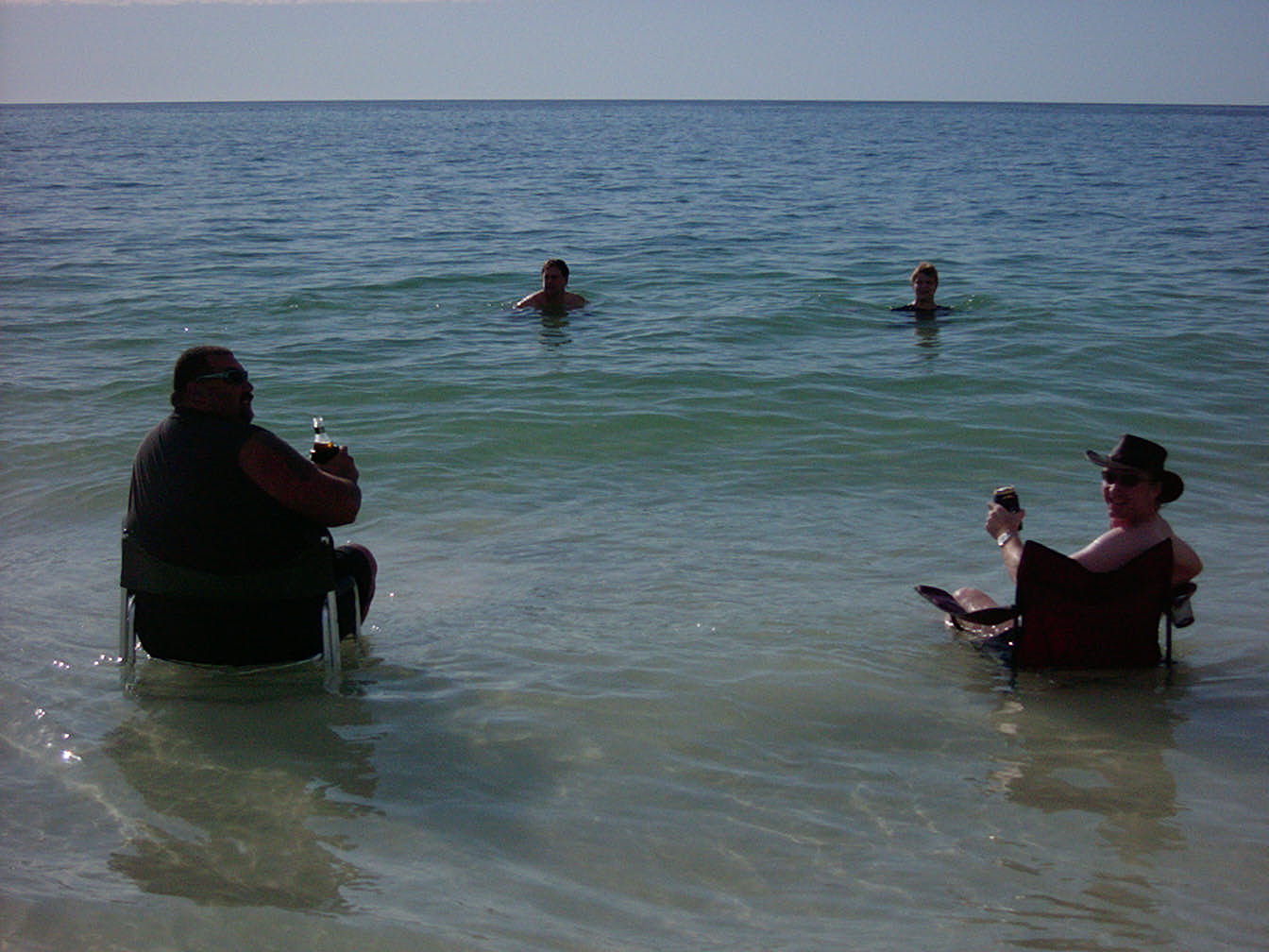 After dropping off the CanTeen crew, we headed back down the beach for a swim before sundown. As you can see we got pretty relaxed. However, no drinks were spilled in the exercise. Big Pete's chair had a pretty hard time, though.