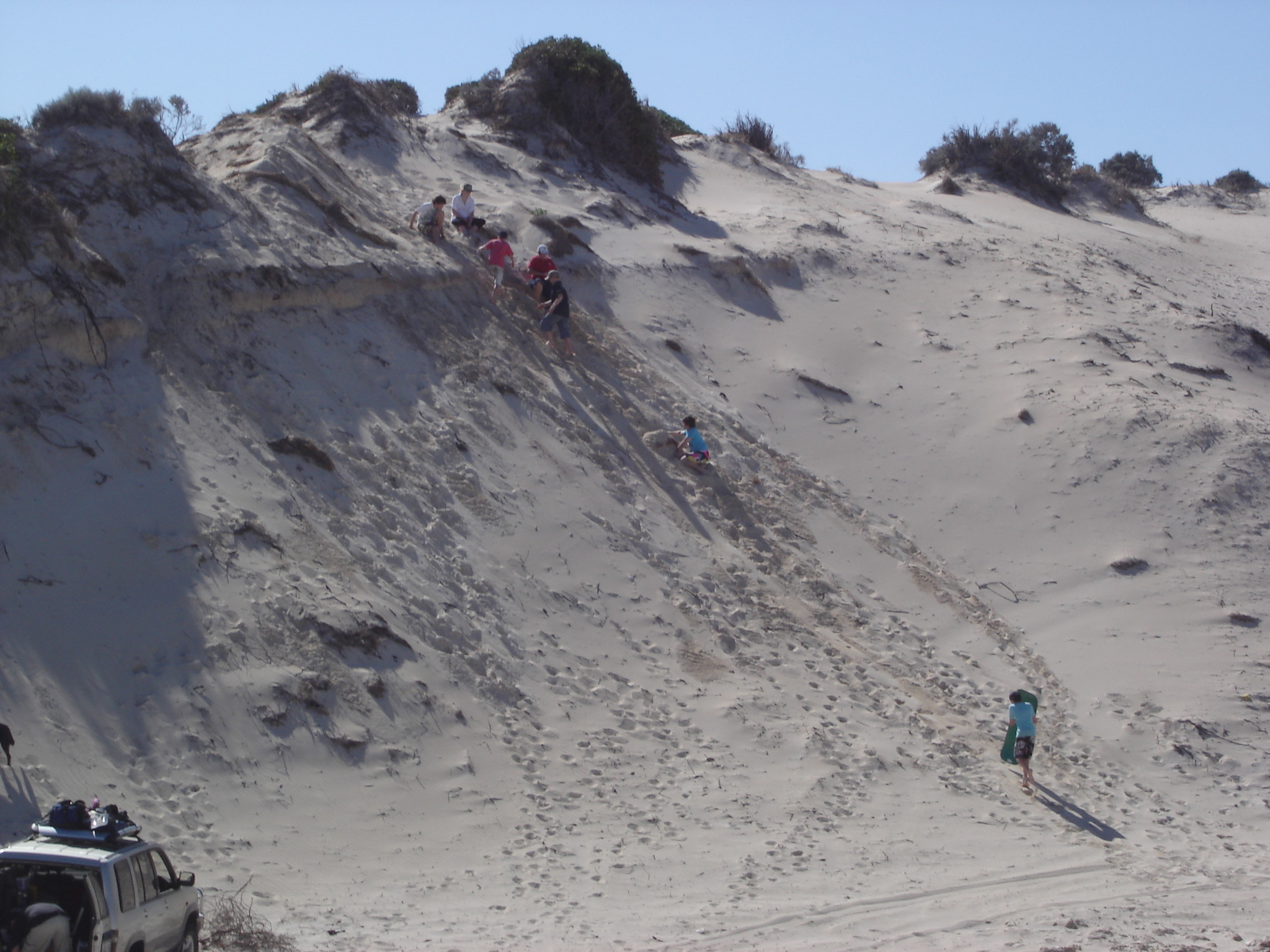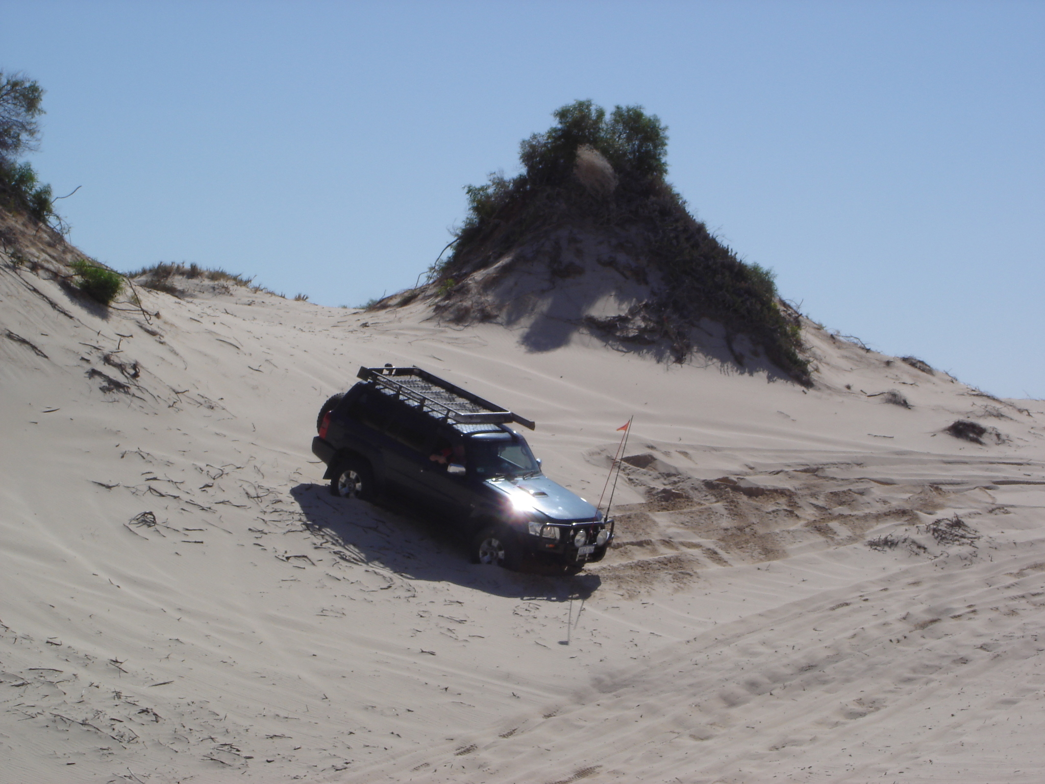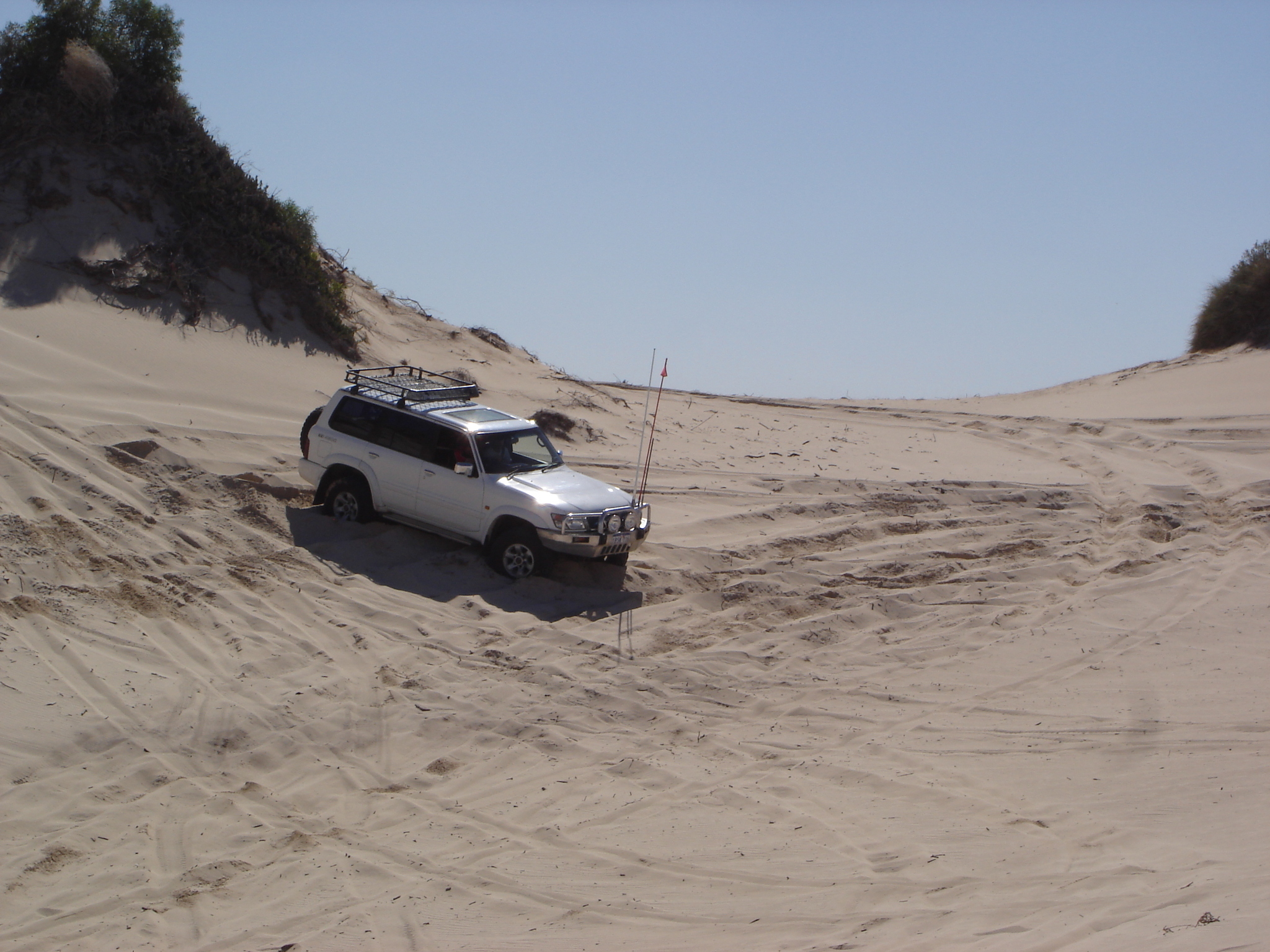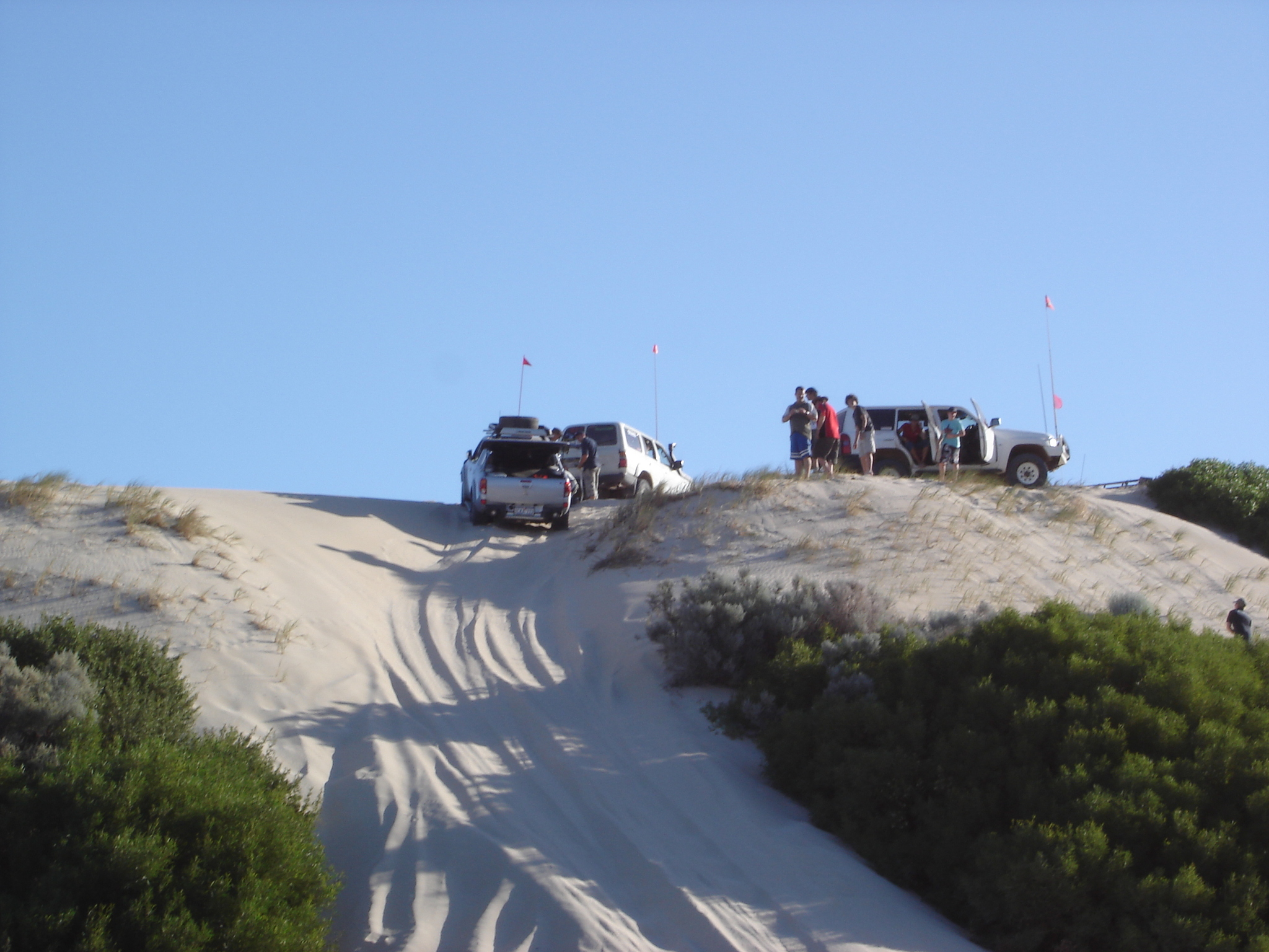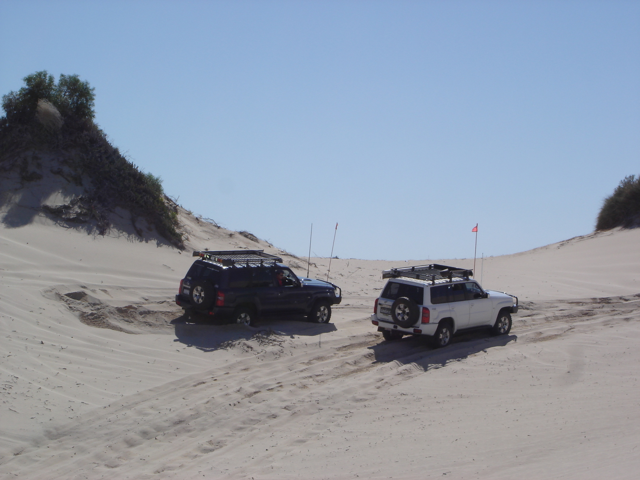 Of interest were the other idiots out there. One guy in an older Jeep Cherokee was trying to climb a dune that had a bit of a sharp angle of entry to it at the bottom. He hit it at speed, bashed in the front, bottom part of his car and set the airbags off to boot. Nice work...