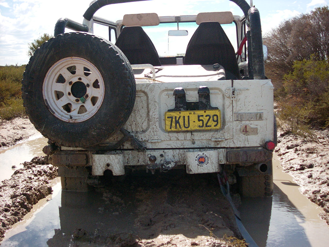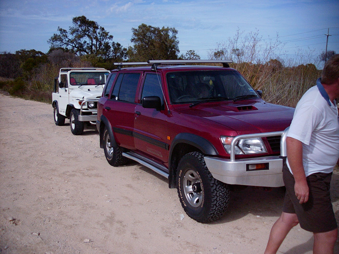 Our valiant travellers for the day were: Gadget had his "real" mud tyres on and was sporting a new lift kit but was missing his roo-bar (and therefore winch - very important) due to a mishap on the road.